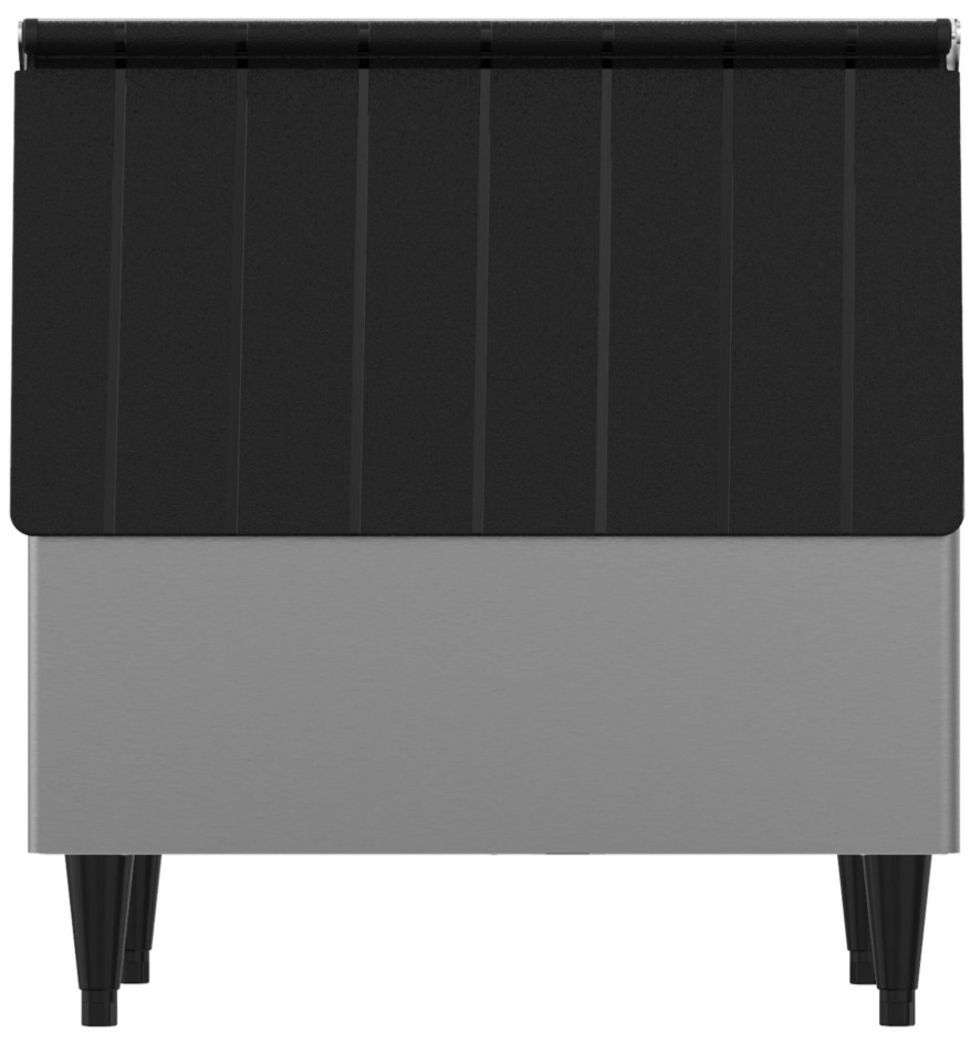 The B-250SF features a durable stainless steel exterior cabinet with a seamless, easy to clean, polyethylene bin liner. This model comes standard with 6″ painted legs and a top-hinged front-opening bin door. 3/4″ fpt drain. The unit is etl verified, georgia made certified and includes a two years: parts & labor warranty (before january 2012 production). *capacity based on 10.3 ft3 x 30lbs/ft3 average density of ice