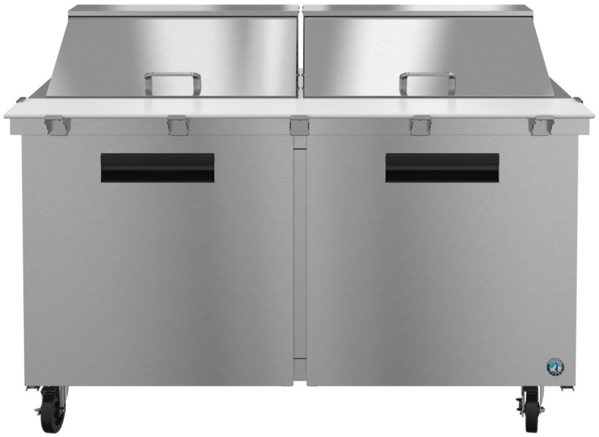The SR60B-24M is constructed of stainless steel, which protects this unit from accidental damage and rust. Plus, it is easy to clean. The SR60B-24M also includes (2) epoxy coated wire shelves adjustable in 1/2″ increments on anodized aluminum supports, (4) 6″ stem casters (2 with brakes) are standard, plus a field reversible, spring assisted self closing door with stay open feature (no kit req’d). Electrical consumption of 4.05 kWh/day at 4 Amps, 10 ft long cord with a 5 – 15P NEMA plug. 60″ x 10″ x 0.5″ thick white polyethylene cutting board is standard. The unit is ETL Safety (US & C) Listed, ETL Sanitation, Georgia Made Certified and includes a 7-7-7 Warranty (seven years labor, seven years parts, seven years compressor — visit hoshizakiamerica.com/support/warranty for eligibility information).