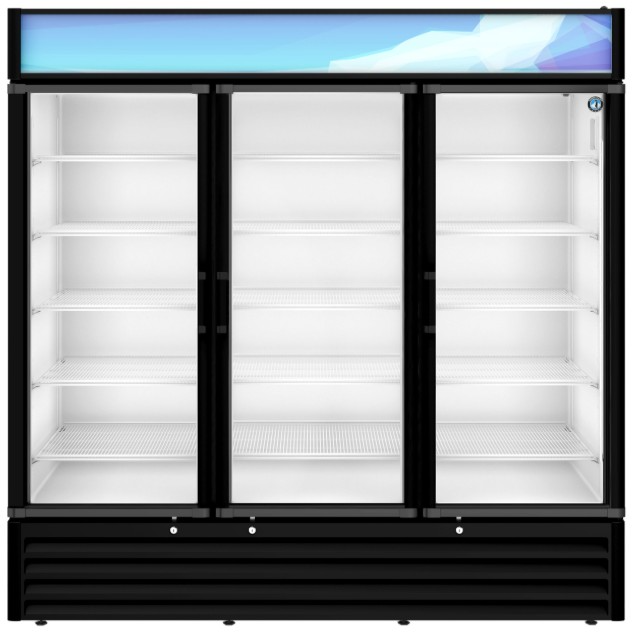 The RM-65-HC-BLK Glass Door Merchandiser is a three section refrigerator with a full glass swing door is the perfect beverage or packaged product display for any operation. It boasts an impressive storage capacity of 56.04ft3 (830: 20oz bottles, or 1926: 12oz cans).Read More